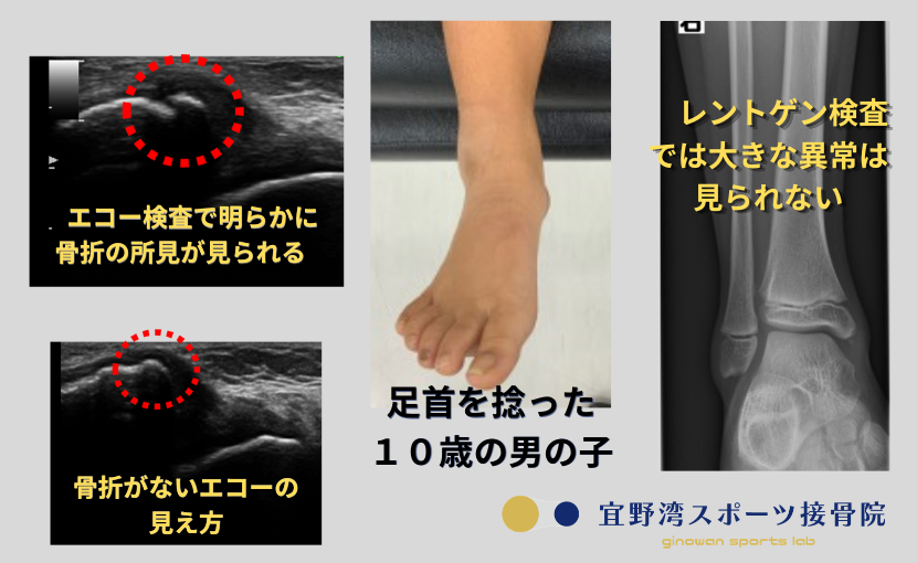 特にミニバス世代では、単なる捻挫ではなく、靭帯損傷や裂離骨折が隠れていることがあります。歩けている場合でも油断せず、状態を正確に評価することが大切です。